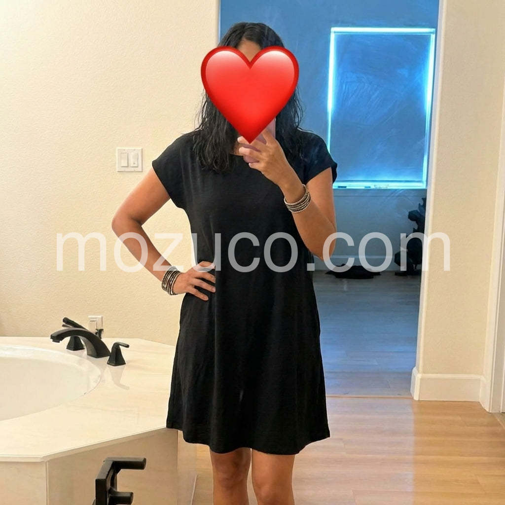 I love this simple yet elegant design! The fabric is soft and comfortable, making it perfect for casual wear or dressing up with accessories. Great quality and fits true to size. Definitely recommend it for anyone looking for effortless style!