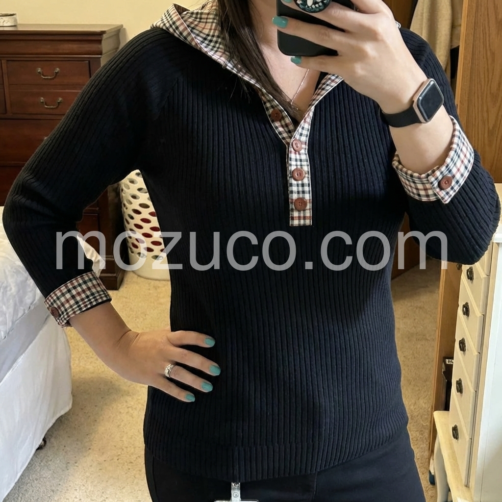 Black Check Trim Long Sleeve Sweatshirt