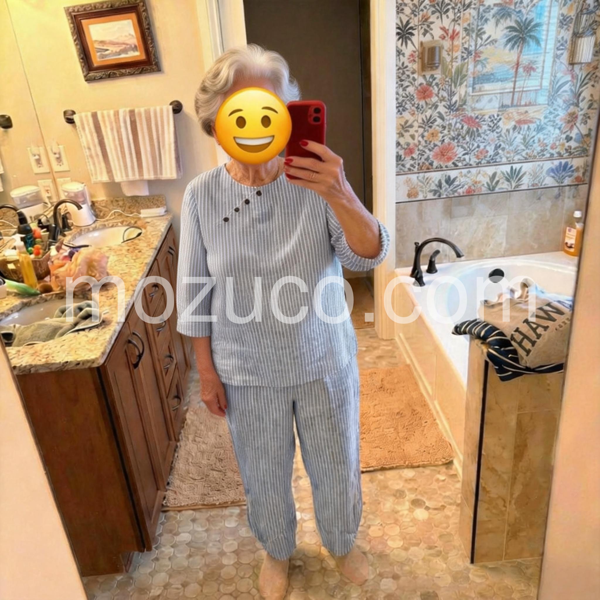 Absolutely love this set! The material feels like a soft linen blend, making it incredibly breathable for hot summer days. The fit is loose and flowy just like the picture. Highly recommend for a beach vacation.