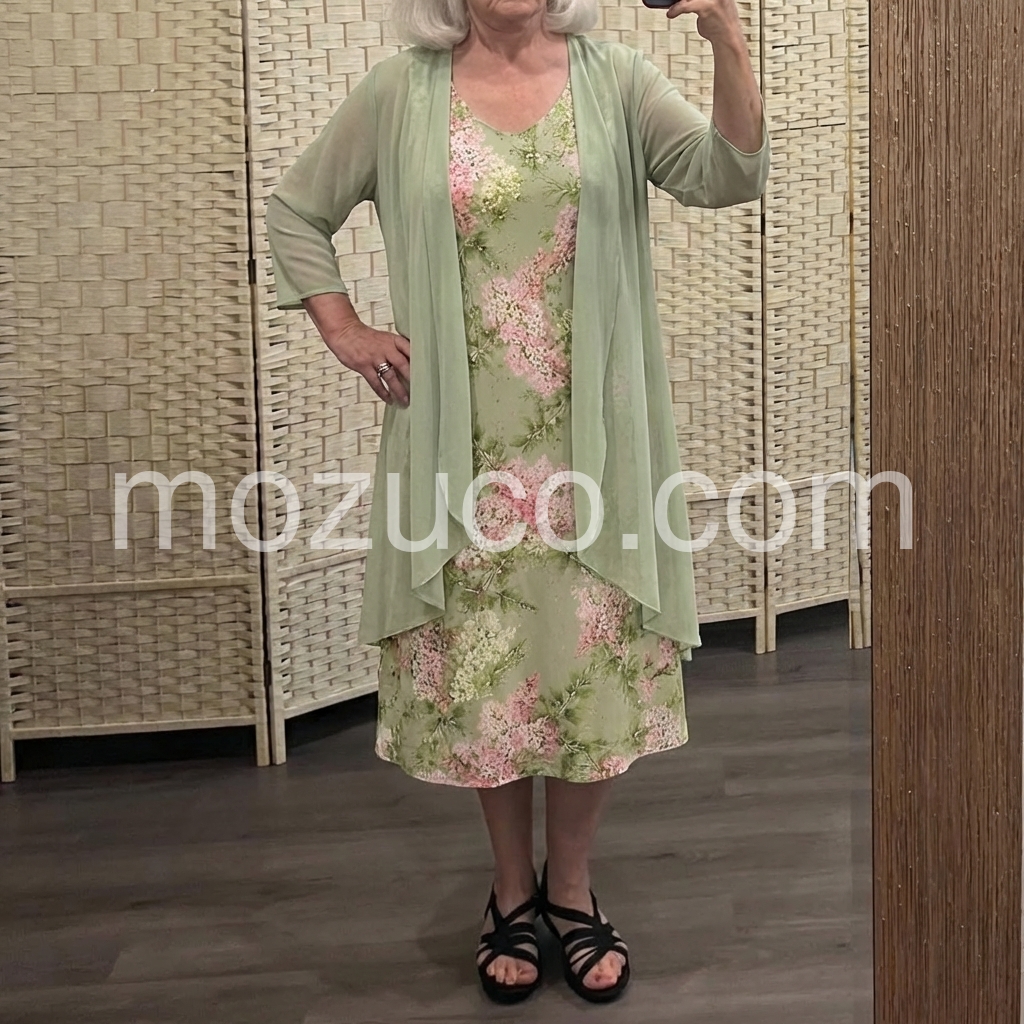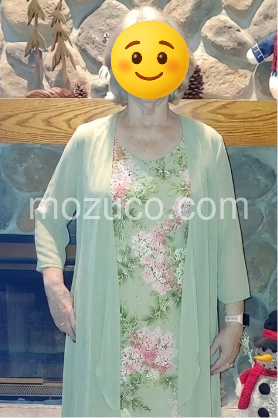 As an older woman, I appreciate a dress that offers some modesty while still looking stylish. The sheer overcoat covers my upper arms perfectly. The floral design is feminine and the fabric is very breathable. It is my new favorite dress for special occasions.