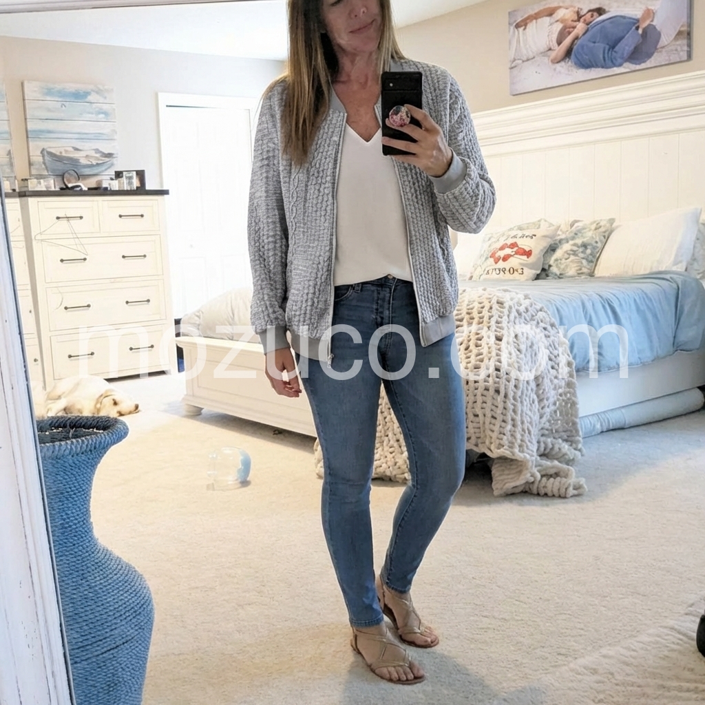 This outerwear is incredibly soft and comfortable. The zipper design not only keeps you warmer but also makes it easy to style however you like. It looks exactly like the photos online.